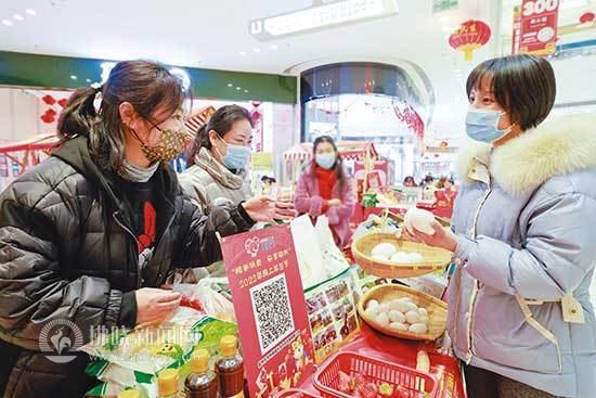 1月22日,市民在吾悅廣場(chǎng)采購年貨。2022年宿州網(wǎng)上年貨節(jié)于1月20日開始,通過線上線下融合的方式舉行,40多家電商企業(yè)為市民準(zhǔn)備了符離集燒雞、欄桿牛肉、夾溝香稻米等上百類特色產(chǎn)品,滿足消費(fèi)者春節(jié)購物需求。記者 董虎 攝