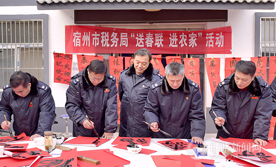 揮毫潑墨送祝福,翰墨飄香迎新春。1月19日下午,市稅務局黨員志愿者來到幫扶村——碭山縣良梨鎮(zhèn)豐棉村,舉辦“送春聯(lián)、進農家”活動,為村民送去新春祝福。 沈道光 攝