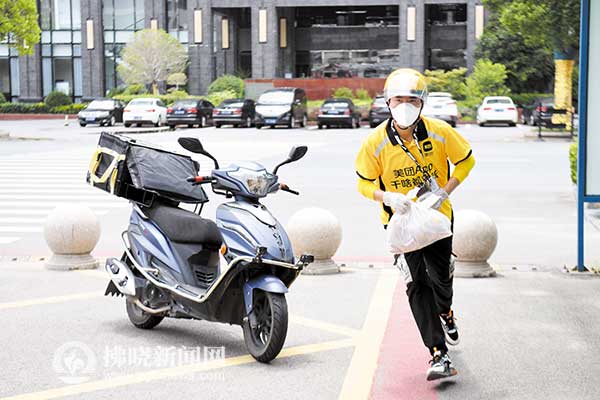 7月5日,譚章夢為顧客配送訂單。今年27歲的譚章夢是安徽省宿州市泗縣的一名外賣小哥。泗縣本輪新冠肺炎疫情發(fā)生后,譚章夢主動向公司申請加入物資保供組,忙碌在疫情防控一線,為一家大型保供商超提供配送服務(wù),保障米面蔬菜等生活必需物資的配送。接單、取貨、送貨,譚章夢穿梭于大街小巷,一天工作約12個小時?!般艨h是我的家鄉(xiāng),我想為家鄉(xiāng)作點(diǎn)貢獻(xiàn),為物資保供出份力?!弊T章夢說。 新華社 發(fā)