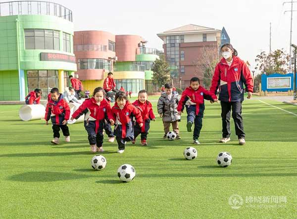 2月13日,在泗縣經(jīng)濟(jì)開(kāi)發(fā)區(qū)中心幼兒園內(nèi),孩子們正在操場(chǎng)鍛煉。