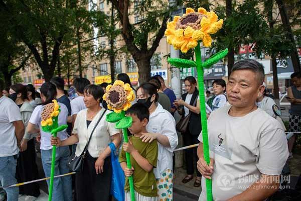 宿州二中考點(diǎn)外,家長(zhǎng)手舉“向日葵”靜靜等候,祝愿孩子“一舉奪魁”。