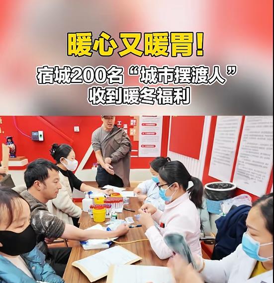 暖心又暖胃!宿城200名“城市擺渡人”收到暖冬福利