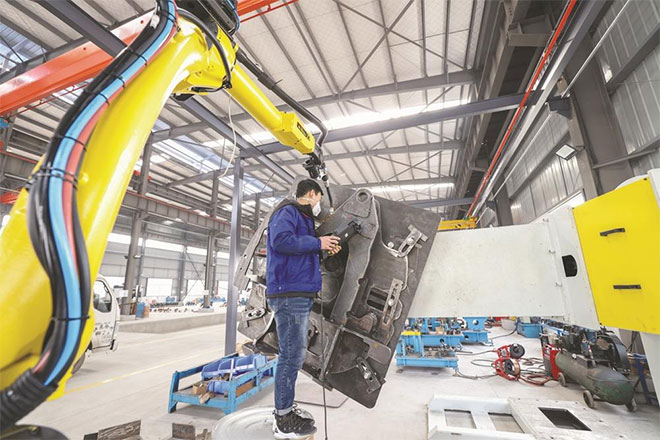 宿徐現(xiàn)代產(chǎn)業(yè)園區(qū)內(nèi)的陸盾機械制造有限公司焊接自動化車間。(宿州市委宣傳部 供圖)