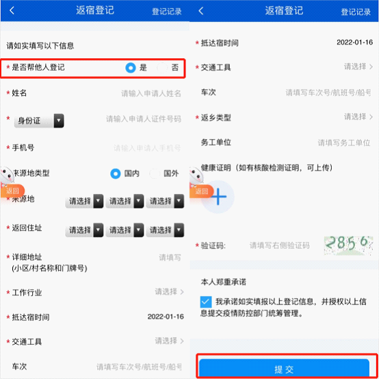 為自己登記:請申請人詳細填寫“來源地”“返回地址”以及“詳細地址”“工作行業(yè)”“抵達宿州時間”等信息,以便按照要求落實疫情屬地管理。