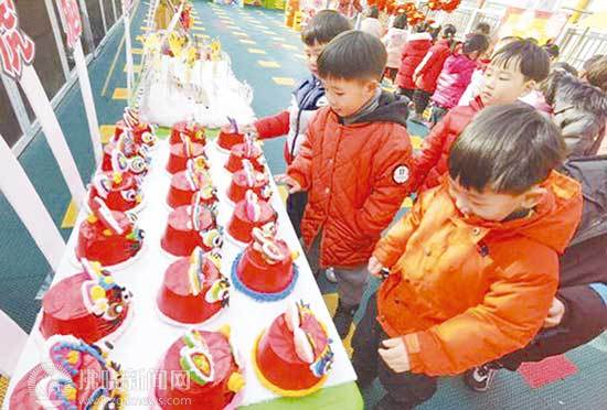 靈璧縣一家幼兒園在展示手工飾品“虎頭帽”。