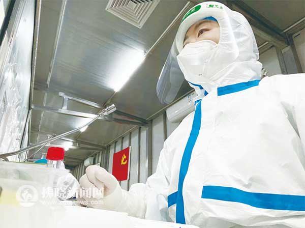 “社區(qū)工作人員告訴我們,有一些老人行動不便,還有的是封控區(qū),我們需要上門幫忙采集核酸?!备痂¤『屯卤憬M成流動的核酸采樣小分隊分批進入。由于小區(qū)沒有電梯,最高樓層為6樓,有電梯的樓層有二三十層,8個人的小分隊每人要采四五十戶,跑上跑下,忙前忙后,累得全身都汗?jié)窳?。為了盡快完成任務(wù),她們經(jīng)常五六個小時甚至更長的時間不進食不喝水不上廁所,最多時候一天要完成3個檢測點的工作。“為了防控疫情,我們付出再多都值得。”在上海的后半個月,葛琛琛主要對口黃浦區(qū)封控、管控區(qū)的核酸采樣,信息采集員依次為受檢人員掃碼、核對信息、貼標簽,隨即采樣人員再次核對姓名、拆長棉簽包裝、采樣、將樣本裝入采樣管,“一掃一采”一氣呵成,順利完成每天600余人的采樣工作。