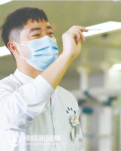 2月17日下午5時(shí)許,高亞楠在病區(qū)巡視病房時(shí),突然發(fā)現(xiàn)一位患者呼吸急促,血氧飽和度93%,心電監(jiān)護(hù)顯示心率115次/分。他立即抬高患者床頭,同時(shí)呼叫醫(yī)生、準(zhǔn)備好搶救物品。醫(yī)生很快趕來(lái)對(duì)患者進(jìn)行檢查和救治,高亞楠積極協(xié)助醫(yī)生,并不停安撫著患者。隨著救治的有效進(jìn)行,患者的癥狀漸漸緩解,緊張不安的情緒也在高亞楠的耐心安撫下,慢慢平靜下來(lái)。終于松一口氣的高亞楠這才發(fā)現(xiàn),防護(hù)服里的衣衫早已被汗水浸透。 記者 劉春艷