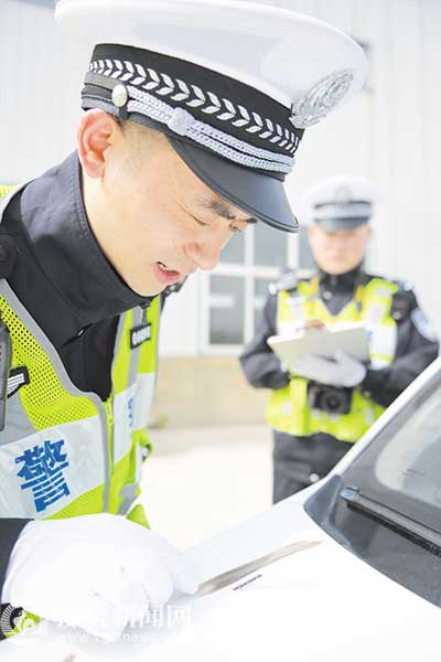 4月27日,張恒菖對肇事車輛的碰撞痕跡進(jìn)行勘驗(yàn),然后向指揮中心匯報(bào)情況。