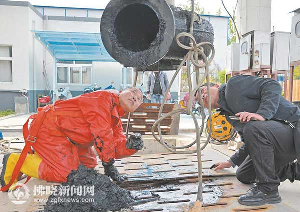 大功率潛污水泵吊上來之后,呂西彪發(fā)現(xiàn)泵體內(nèi)被污泥雜物堵塞,工具無法進(jìn)入內(nèi)部,只能用手清理。泵體底部夠不著的地方,他便跪在地上,臉緊貼著遍布污垢的泵體去清理,大概20分鐘后,清理了所有雜物,泵體內(nèi)也沖洗干凈,仔細(xì)檢查之后,好在只是普通電路系統(tǒng)故障,經(jīng)過維修,排除故障。