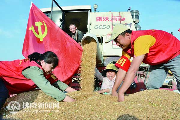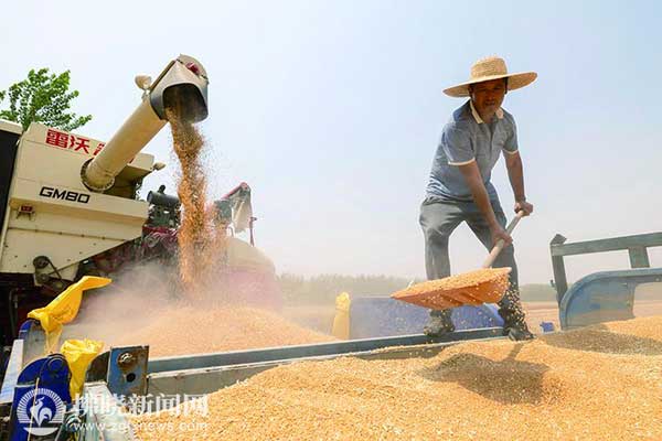 “今年小麥獲得這樣可喜的收成,與我市大力實(shí)施科技強(qiáng)農(nóng)、機(jī)械強(qiáng)農(nóng)有很大關(guān)系。自小麥播種以來(lái),我市1000多名科技特派員奔赴生產(chǎn)一線服務(wù)農(nóng)業(yè)生產(chǎn),70多萬(wàn)臺(tái)(套)農(nóng)機(jī)奮戰(zhàn)‘三夏’,小麥機(jī)收率達(dá)99%,有了科技、有了新式機(jī)械,農(nóng)民增收是必然的?!笔修r(nóng)業(yè)農(nóng)村局副局長(zhǎng)趙曉春向記者介紹,今年我市小麥生產(chǎn)高產(chǎn)典型多,天氣條件總體有利,無(wú)明顯自然災(zāi)害,產(chǎn)量結(jié)構(gòu)優(yōu)勢(shì)得到充分發(fā)揮。調(diào)查發(fā)現(xiàn),今年麥穗中部小穗4粒的較多,甚至出現(xiàn)5粒、6粒的小穗,為穗粒數(shù)的增加提供了有利條件。特別是今年各級(jí)黨委、政府十分重視以赤霉病為主的后期病蟲(chóng)害防治工作,各級(jí)財(cái)政投入資金達(dá)1.2億元,防治面積超過(guò)1400萬(wàn)畝次,小麥赤霉病防控成效顯著,小麥籽粒品質(zhì)明顯高于往年。