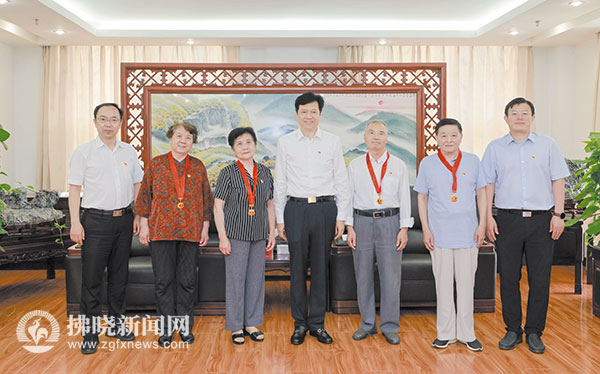 6月28日上午,市委書記楊軍等領(lǐng)導(dǎo)為4名老黨員頒發(fā)“光榮在黨50年”紀(jì)念章并合影。記者 董虎 攝
