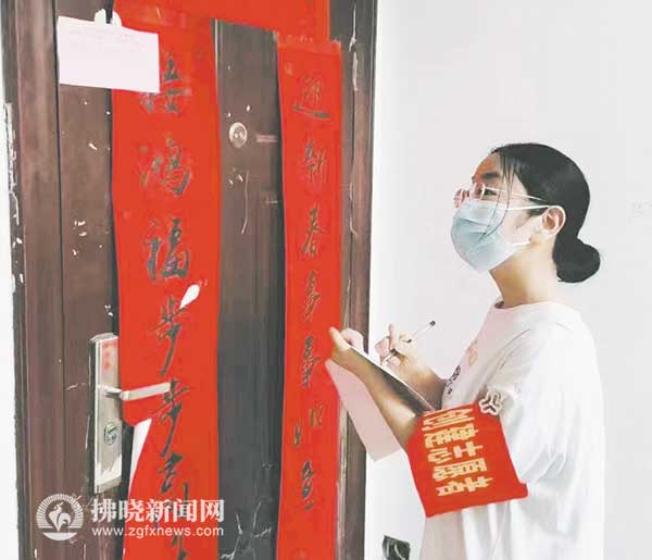 志愿者落實“敲門行動”上門登記信息。