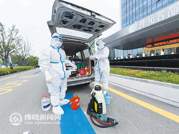 工作人員準備進行環(huán)境消殺。