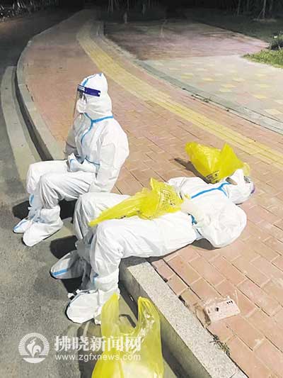 疲憊至極的“大白”席地而臥。