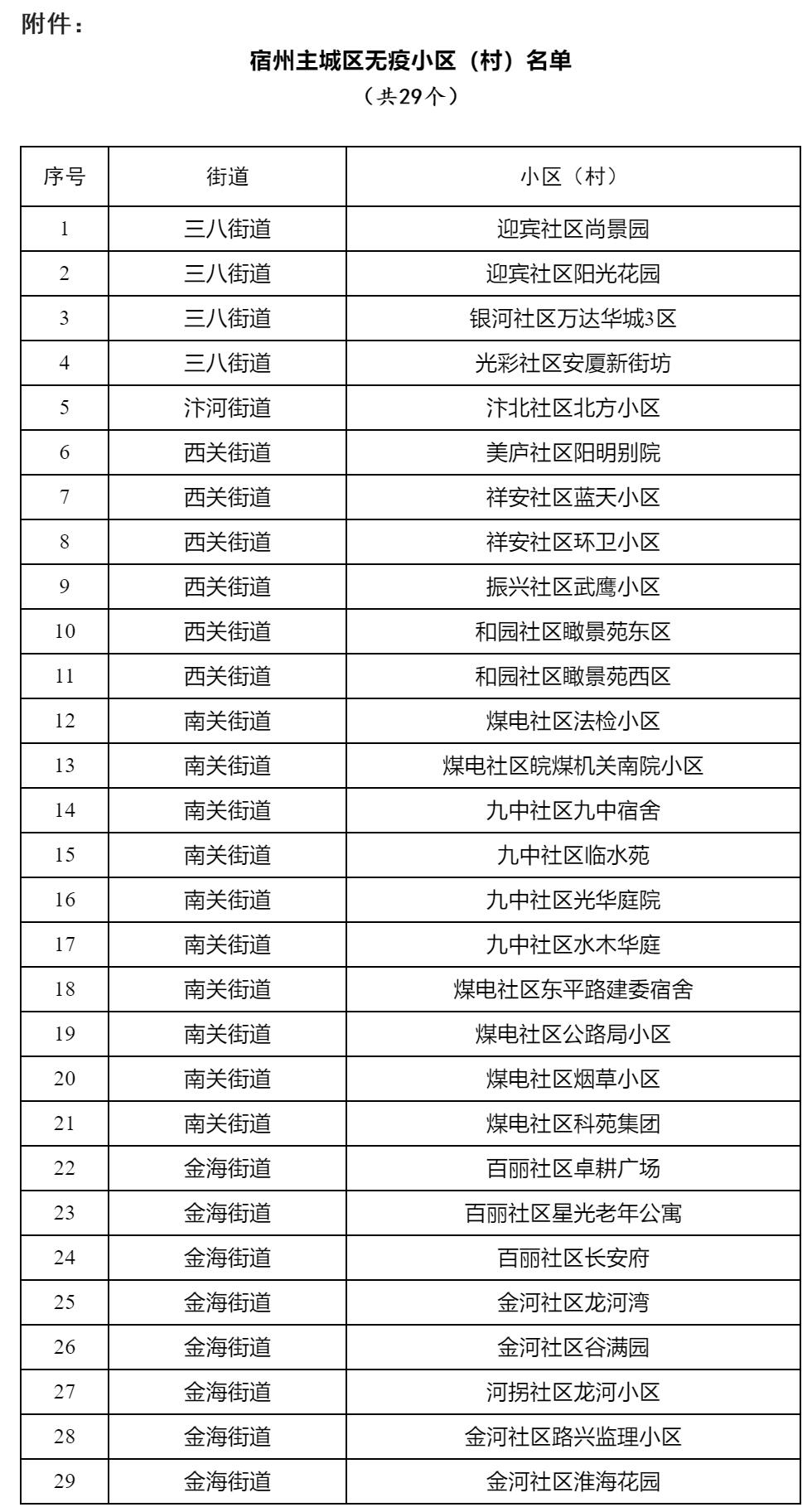 【通告】關(guān)于宿州市主城區(qū)首批無(wú)疫小區(qū)(村)的通告(第37號(hào))