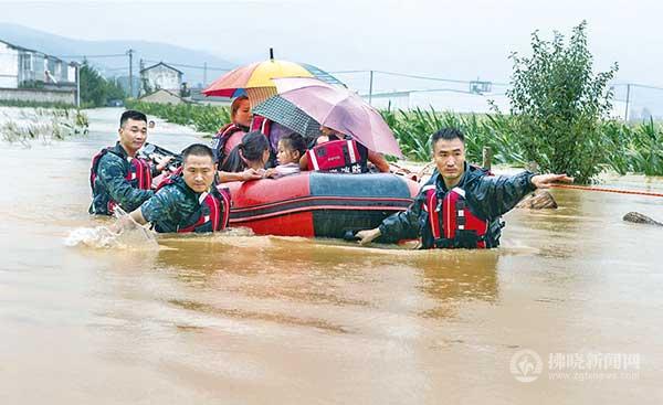 駐宿部隊(duì)抗洪搶險(xiǎn)后受到群眾的熱情歡送。