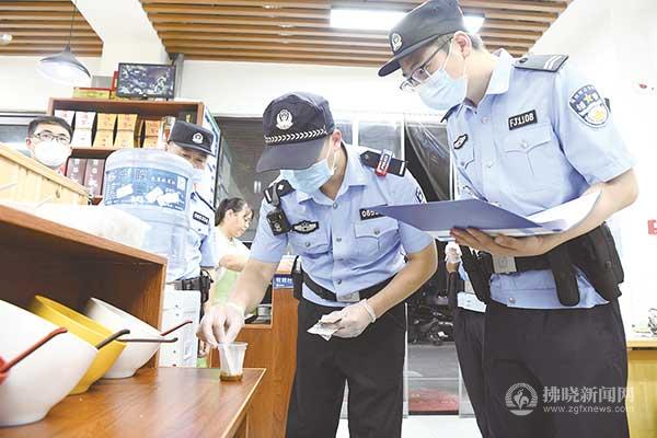 民警輔警在餐飲場(chǎng)所開展食品安全清查。
