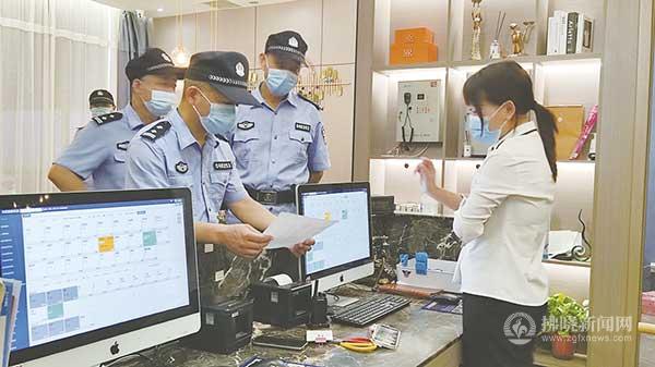 民警輔警對(duì)賓館等行業(yè)場(chǎng)所開展清查。