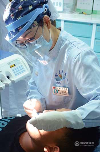 市立醫(yī)院口腔科醫(yī)生在為患者做治療。