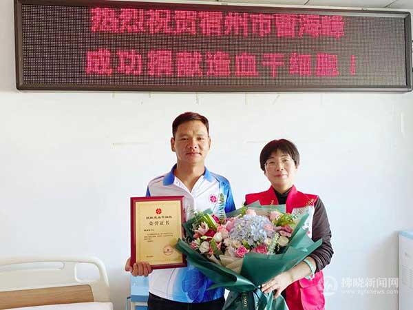 曹海峰,埇橋區(qū)人,1988年出生,現(xiàn)為中石油天然氣管網(wǎng)公司華東分公司職員。多年來,他堅持用無償獻血的方式奉獻社會。2018年,他在一次獻血時,留下8毫升血樣,加入中國造血干細胞捐獻者資料庫。