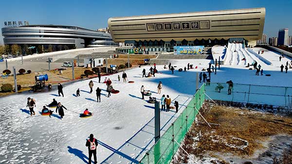 宿州體育館滑雪場一片歡聲笑語。 特約攝影 張成伍