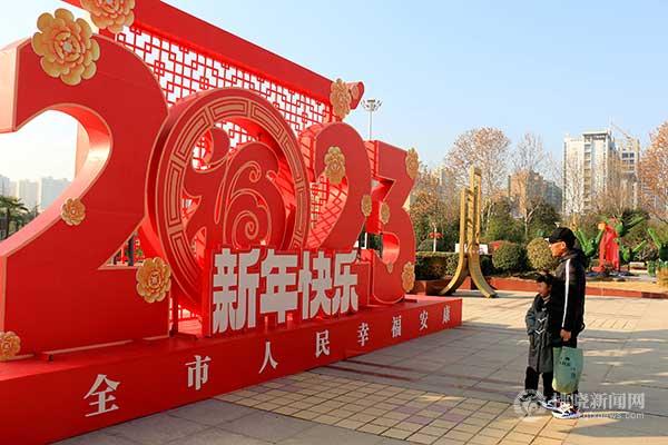 街頭的“新年快樂”造型,營造了喜慶祥和的節(jié)日氛圍。 特約攝影 丁輝