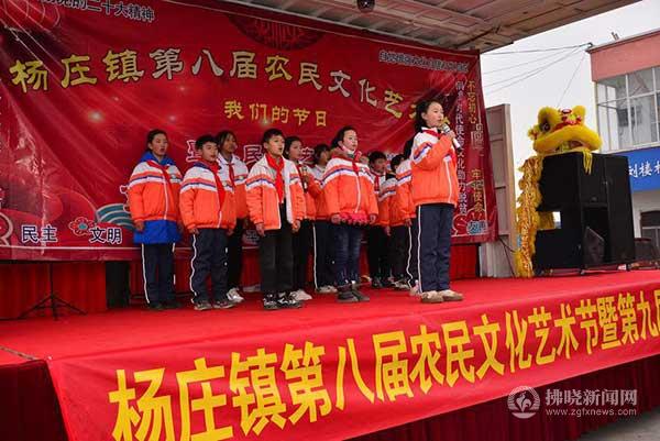 埇橋區(qū)楊莊鎮(zhèn)劉樓村的孩子們表演小合唱。 特約攝影 張從本