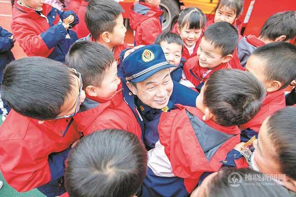 演練結(jié)束,小朋友們不舍地涌上去與消防員叔叔告別。