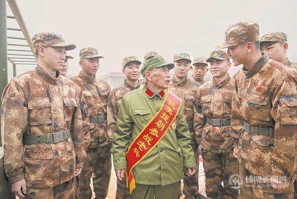 抗美援朝參戰(zhàn)老兵朱恒生為預(yù)定新兵講述戰(zhàn)斗故事。