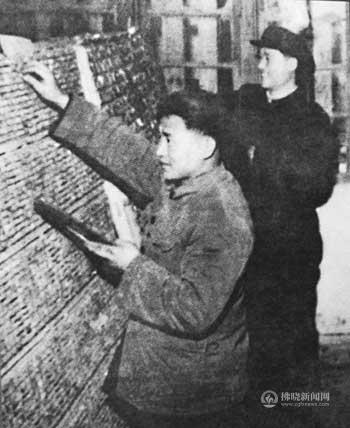 上世紀(jì)60年代末,印刷廠工人在排字車間揀字。