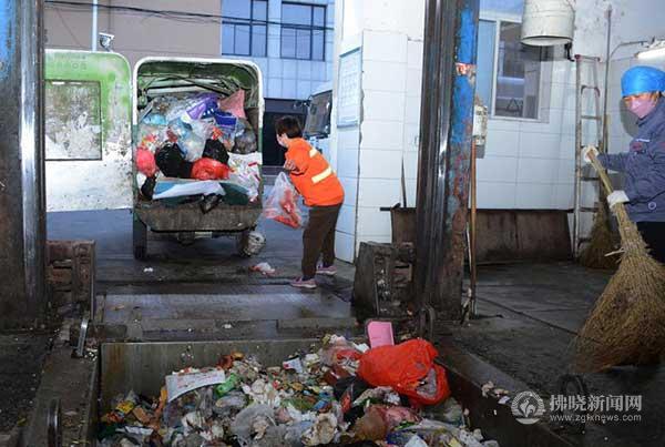 “我現(xiàn)在負責三里灣街道、南關街道的部分社區(qū)的垃圾清運,每天早上4:30之前上崗?!苯衲?0歲的關玉萍,個頭不高,一邊麻利地收拾垃圾桶周邊灑落的垃圾,一邊跟我說,早上的垃圾最多,桶里裝不下了,有人就把垃圾放在桶邊上,我們要清理干凈再裝車。從院子里面把垃圾桶推到垃圾車旁邊,掛桶、抬升、抖桶、降桶,然后再把桶推到原位,關玉萍熟練地操作著,幾乎是一路小跑,我有些跟不上她。