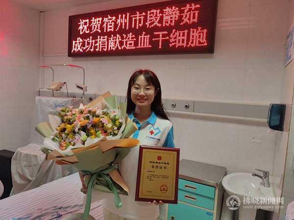 拂曉新聞網(wǎng)--拂曉報(bào)訊 5月18日,宿州志愿者段靜茹在合肥捐獻(xiàn)出142毫升造血干細(xì)胞混懸液,為一名5歲的白血病患兒續(xù)航生命。她成為我市第34例成功實(shí)現(xiàn)造血干細(xì)胞捐獻(xiàn)的志愿者。