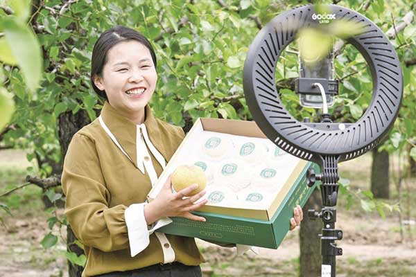 王琳在梨園直播銷售碭山酥梨。