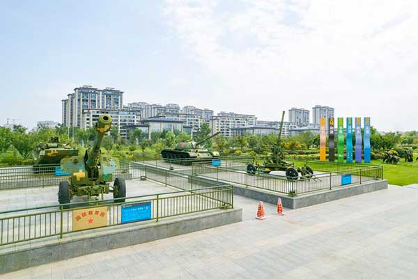 宿州市雙擁“一廊三園”(“一廊”是指雙擁文化長廊;“三園”是指雙擁主題園、國防教育園和紅色故事園)是我市前不久新添的一處紅色打卡地,位于宿城新汴河景區(qū)北岸?!耙焕热龍@”內,圖文并茂的雙擁文化展板和道旗,退役下來的護衛(wèi)艦、作戰(zhàn)坦克、自行火炮等軍事武器裝備,與宿州緊密聯(lián)系的紅色故事等雙擁元素吸引眾多市民前來參觀。