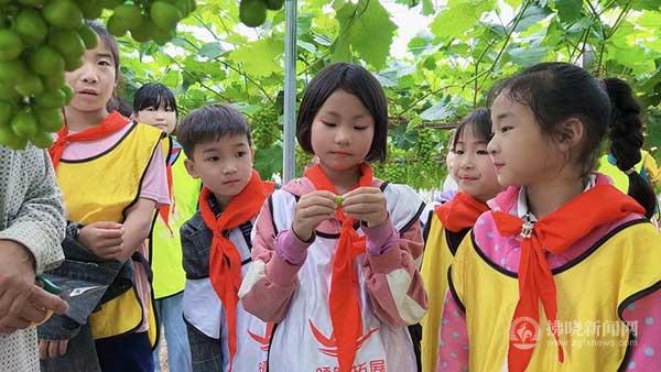 圖為孩子們在葡萄大棚里上體驗課。 張村葡堤原鄉(xiāng)供圖