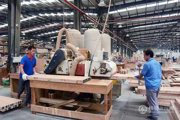 安徽皇友家居有限公司車(chē)間內(nèi),工人在切割板材。記者 王明輝 攝