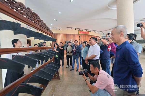 9月27日,“金秋黨媒宿州行”采風(fēng)團(tuán)成員在靈璧奇石文化園觀賞磬石演奏。記者 董虎 攝
