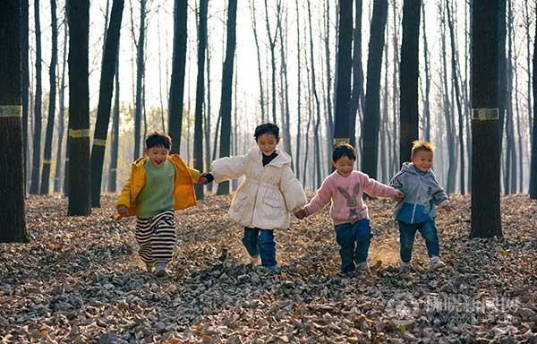 官莊鎮(zhèn)濕地生態(tài)防護林里,游玩的孩子們歡快奔跑。