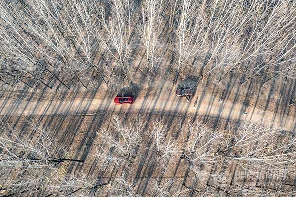 官莊鎮(zhèn)濕地生態(tài)防護林鳥瞰圖。