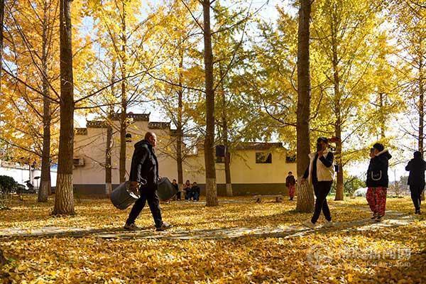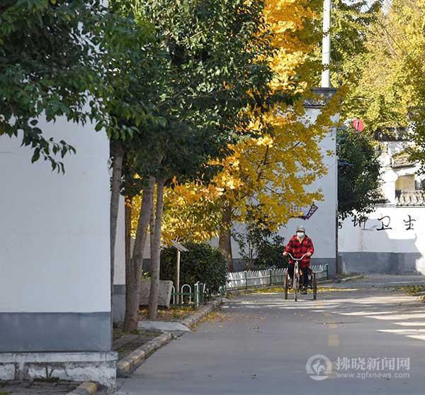 在金黃的銀杏樹葉掩映中的李莊鎮(zhèn)李園新村,整潔而優(yōu)美。