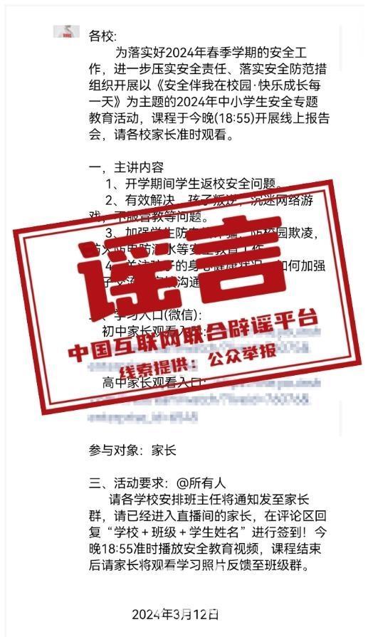 真相:近日,廣西北海40多所中小學(xué)接到自稱“當(dāng)?shù)叵狸?duì)參謀”的電話,要求校方組織全校學(xué)生在互聯(lián)網(wǎng)上觀看所謂的“中小學(xué)生消防安全專題直播”。經(jīng)當(dāng)?shù)叵啦块T和教育部門聯(lián)合調(diào)查,該網(wǎng)絡(luò)直播活動(dòng)為虛假活動(dòng)。直播內(nèi)容與消防安全毫無(wú)關(guān)系,主播通過(guò)話術(shù)向家長(zhǎng)販賣“升學(xué)、考學(xué)焦慮”,從而達(dá)到推銷網(wǎng)絡(luò)課程的目的。當(dāng)?shù)毓膊块T表示,該行為已涉嫌冒充國(guó)家機(jī)關(guān)工作人員招搖撞騙,將嚴(yán)肅追究涉案人員刑事責(zé)任。(來(lái)源:“中國(guó)消防”微信公眾號(hào))