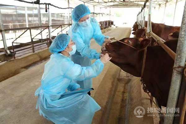 宿州海關(guān)工作人員對供港活牛進行疫病監(jiān)測。劉甜 攝