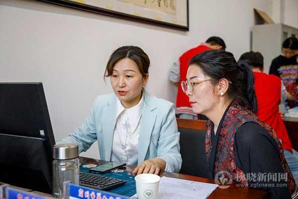 宿州市第九中學(xué)的王曉娟老師和來自措美縣的教師普布卓瑪一起討論問題。