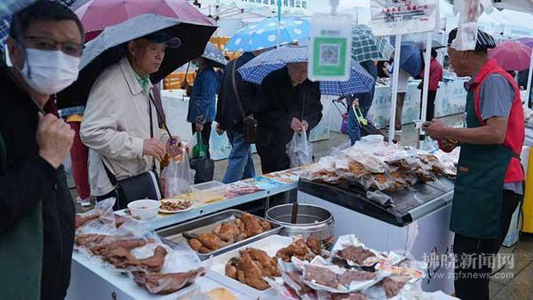 4月30日,在杭州舉辦的農(nóng)產(chǎn)品展銷會上,符離集燒雞展臺前,顧客絡(luò)繹不絕。