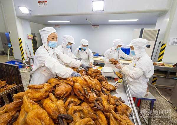 劉老二燒雞廠工人正在進(jìn)行產(chǎn)品冷包裝工作。