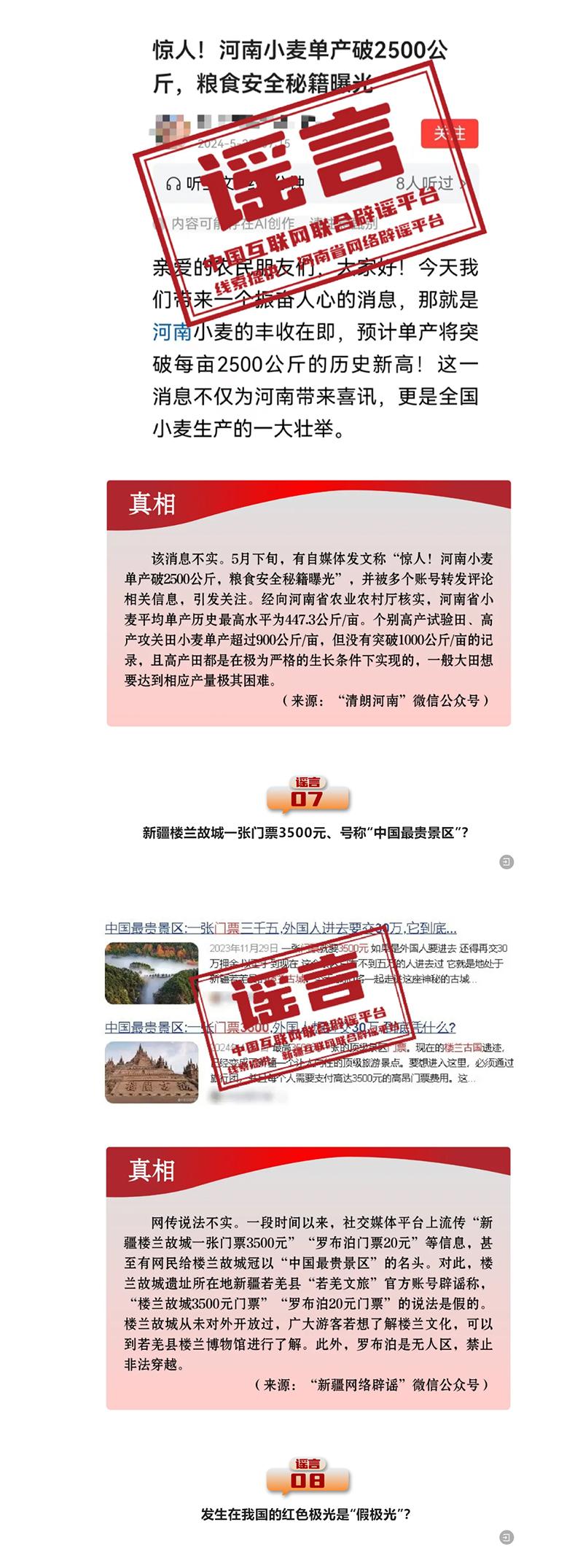 打擊網(wǎng)絡謠言 共建清朗家園 中國互聯(lián)網(wǎng)聯(lián)合辟謠平臺2024年5月辟謠榜