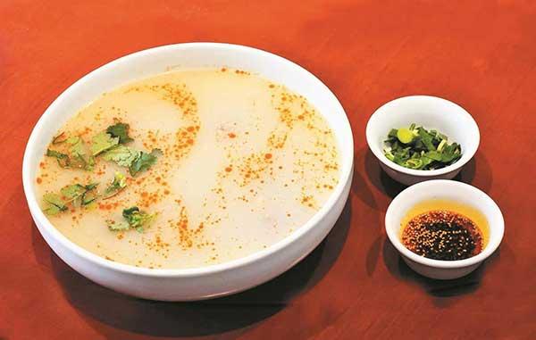 因?yàn)榈乩憝h(huán)境適合飼養(yǎng)山羊,宿州這片土地自古就盛行吃羊肉、喝羊湯,以此強(qiáng)身健體、滋陰補(bǔ)氣。因?yàn)閻鄢匝颍蛉獾呐腼円苍诓粩嘌堇[,在埇橋區(qū)衍生出獨(dú)具特色的老宿縣羊肉湯。