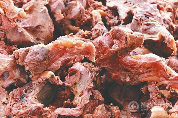 “劉德超驢肉”鹵制十分考究。先將鮮驢肉按部位分開,順骨縫切塊,在清水中浸泡12個小時左右去血污;湯鍋放入清水燒至80℃時,下入驢肉,加適量食鹽、花椒、肉桂、山楂、良姜、茴香等調(diào)料,繼續(xù)燒煮3—4小時,出鍋后晾涼;再將晾涼好的肉塊放入大砂鍋的老湯里,底層先放元寶肉,再放前肘、后肘、后臀,中間放腱子、腰球,最后放肚廂皮、肋條、驢板腸等;加足食鹽,并用紗布包好花椒、茴香、砂仁、豆蔻、丁香、草果、肉桂、良姜、白芷等二十多種香料,填滿冷湯,上壓竹篦和石板,加湯沒過肉塊,煮沸后用小火燜煮12小時左右,濃郁的香氣撲鼻而來,紅堂堂的驢肉醇香可口,綿柔鮮嫩。