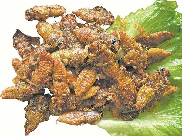 蟬猴捉回來后,用水淘凈,蔥、姜、鹽,腌漬,再蘸上一層面糊,下油鍋炸至漂浮油面撈出,撒上花椒、鹽,入口脆爽干香。也可以放進(jìn)油鍋,用鍋鏟將蟬猴壓扁,慢慢烹熟,醇香可口。鄉(xiāng)親們發(fā)揮聰明才智,煎、炒、烹、炸,包餃子、炸丸子、炒菜……將這道“舌尖”上的美味詮釋得淋漓盡致。