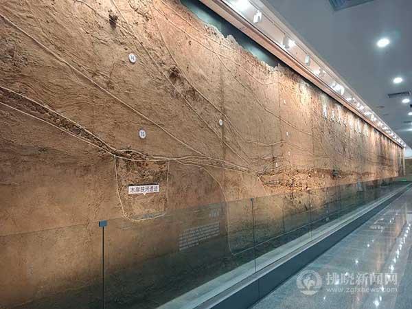 宿州市博物館展示的靈璧鳳山大道隋唐大運(yùn)河遺址大運(yùn)河地層剖面。